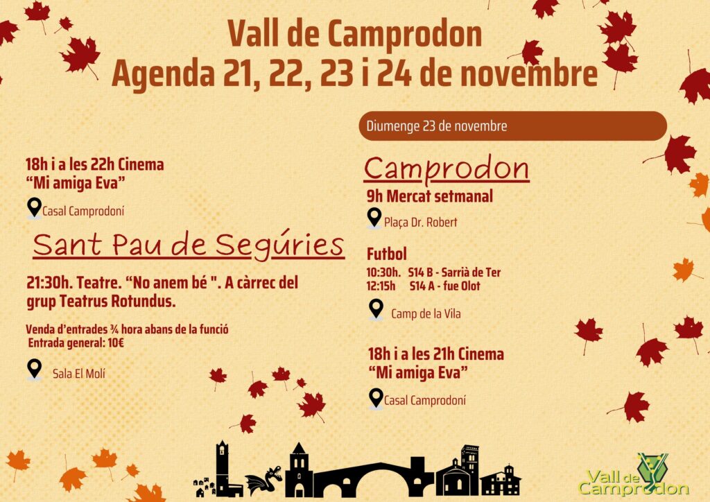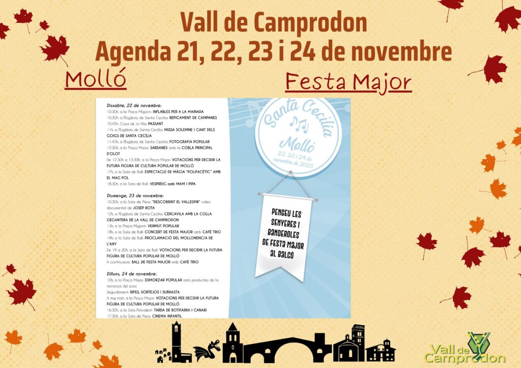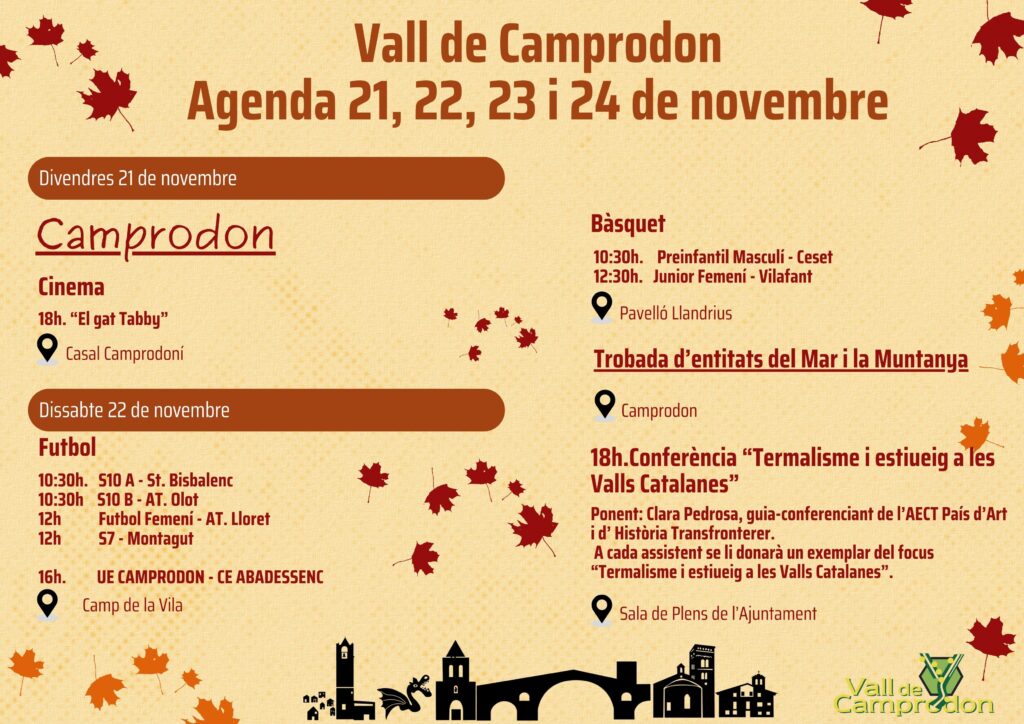 Actualitat AGENDA VALL DE CAMPRODON 21, 22, 23, 24 de novembre 21/11/2025 - 25/11/2025 < Entrada Anterior